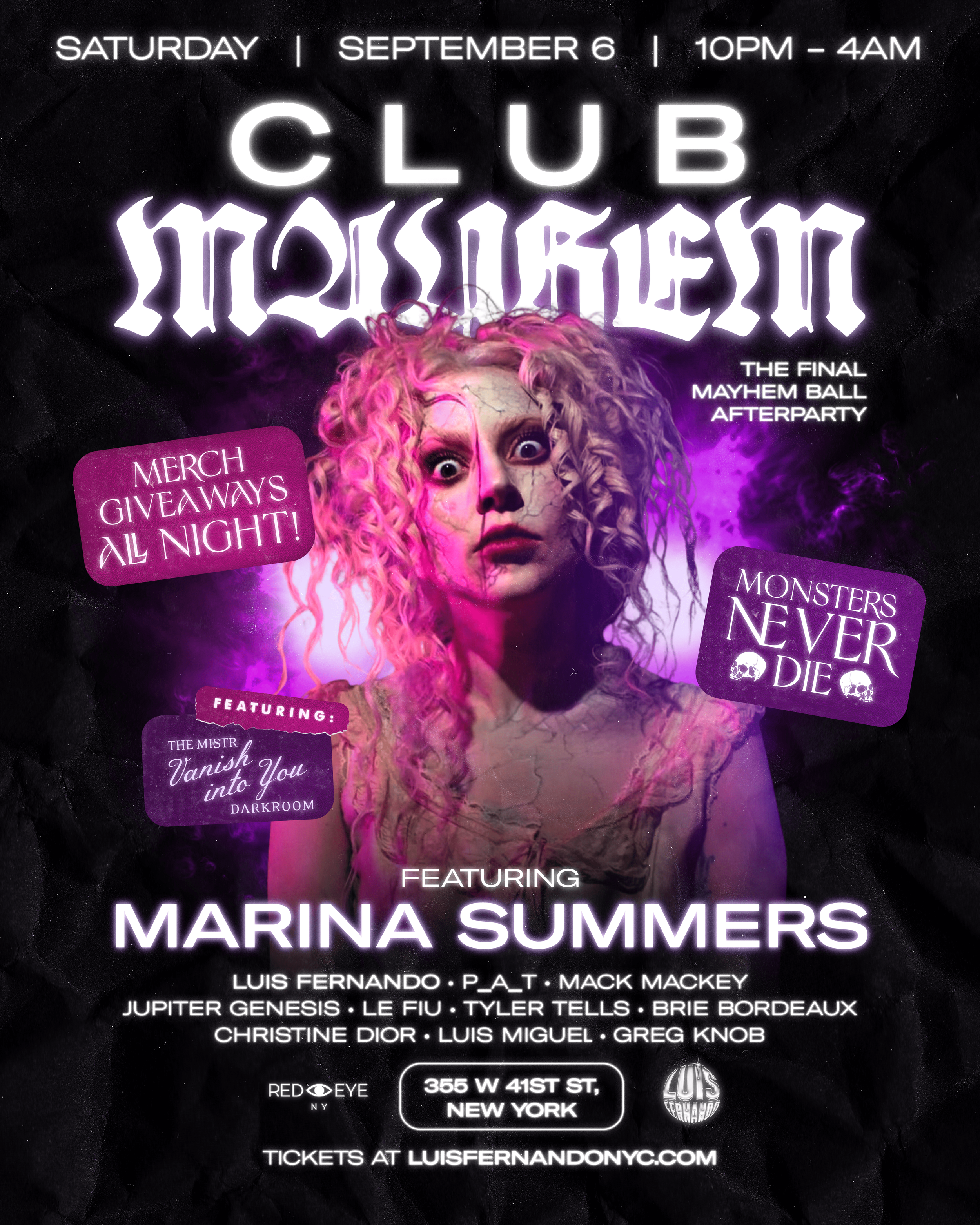 The final MAYHEM BALL AFTER PARTY after Lady Gaga's last Saturday night at Madison Square Garden Feat. Marina Summers!