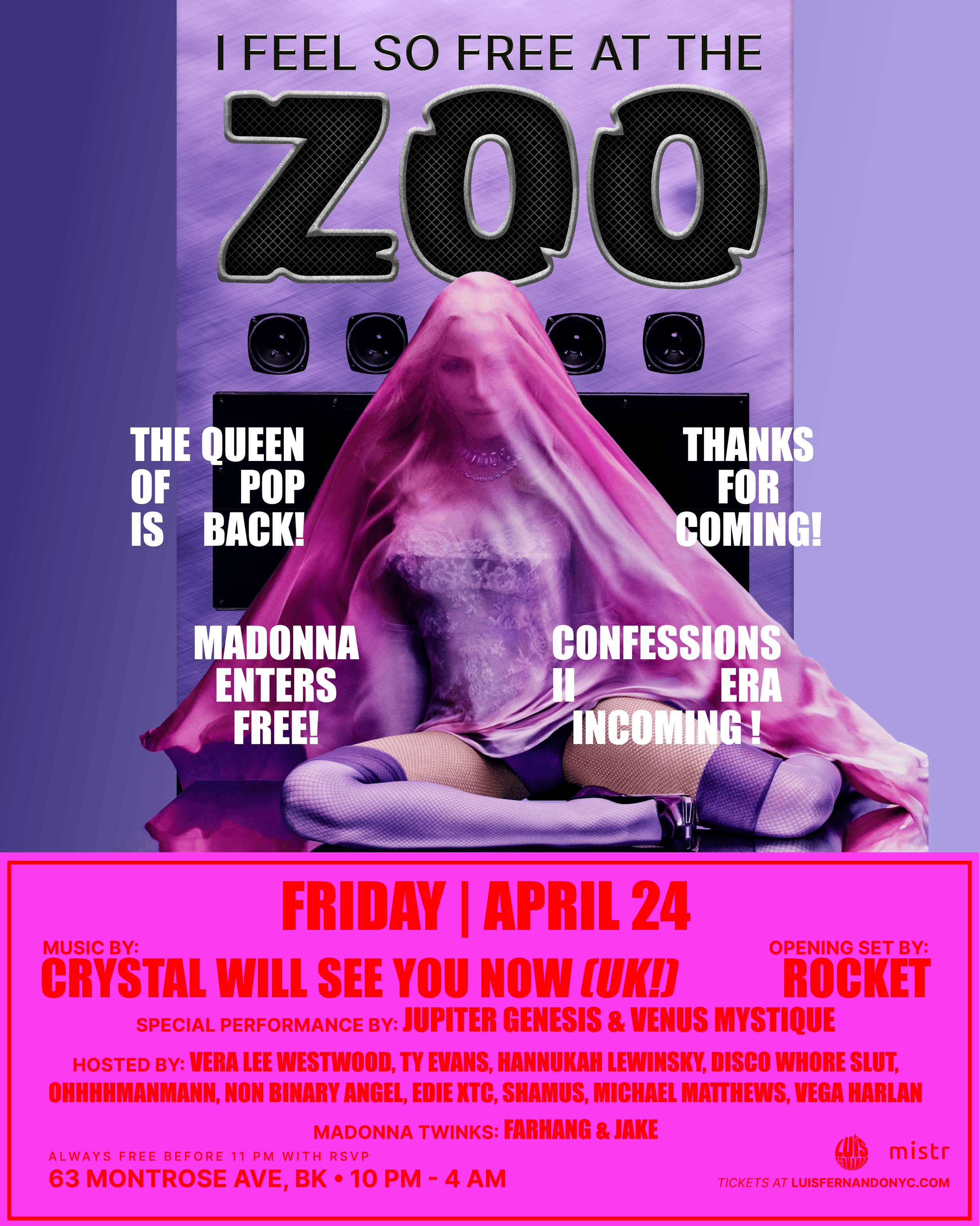 Under glowing lights and surrounded by bodies that came to feel something, expect a night of pure release—where lace meets latex, devotion meets decadence, and every beat hits like a confession you’ve been dying to make. From euphoric dancefloor anthems to dark, pulsing club energy, this is ZOO at its most elevated, most chaotic, and most divine.